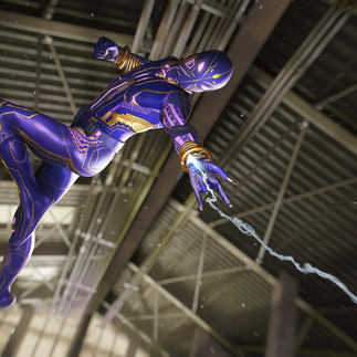 A Insomniac Games colaborou com diversos artistas de quadrinhos, jogos e filmes para criar vários trajes exclusivos. São 65 trajes na versão normal do jogo mais 10 na versão Edição Digital Deluxe.